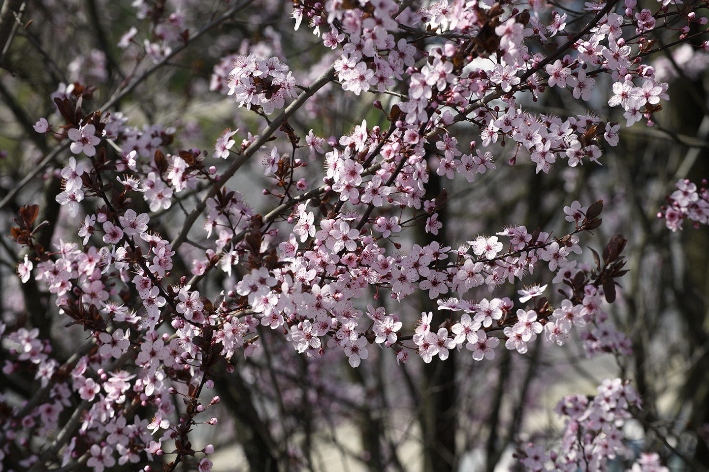 This flowering plum tree in our front yard seems to be taking it all in stride. It flowers in early-middle Spring, in pretty much any kind of soil. For me, it is a sign of awakening regardless of what the weather does. I stop along my afternoon walk to calmly watch the delicate petals float down from the branches as the season progresses.